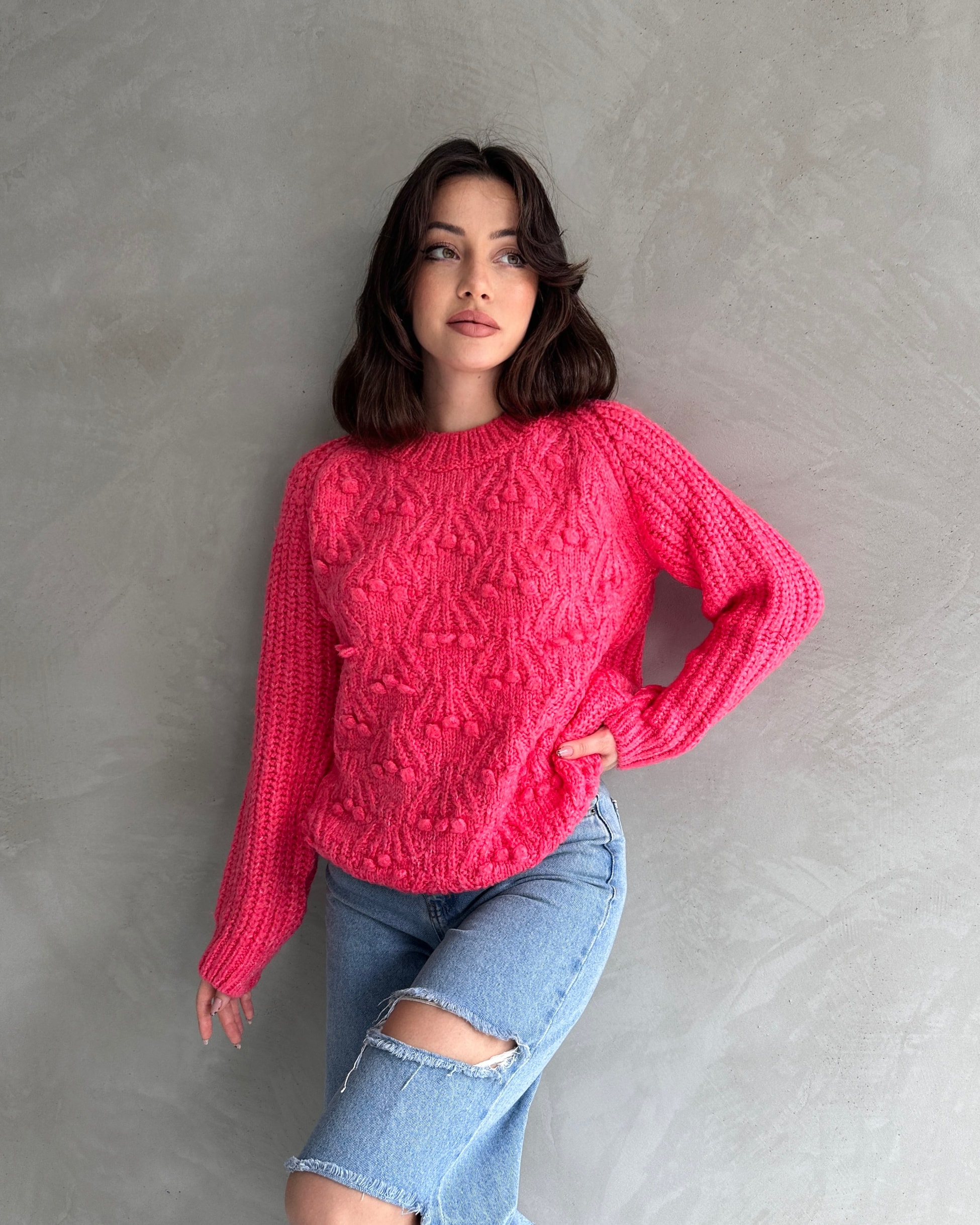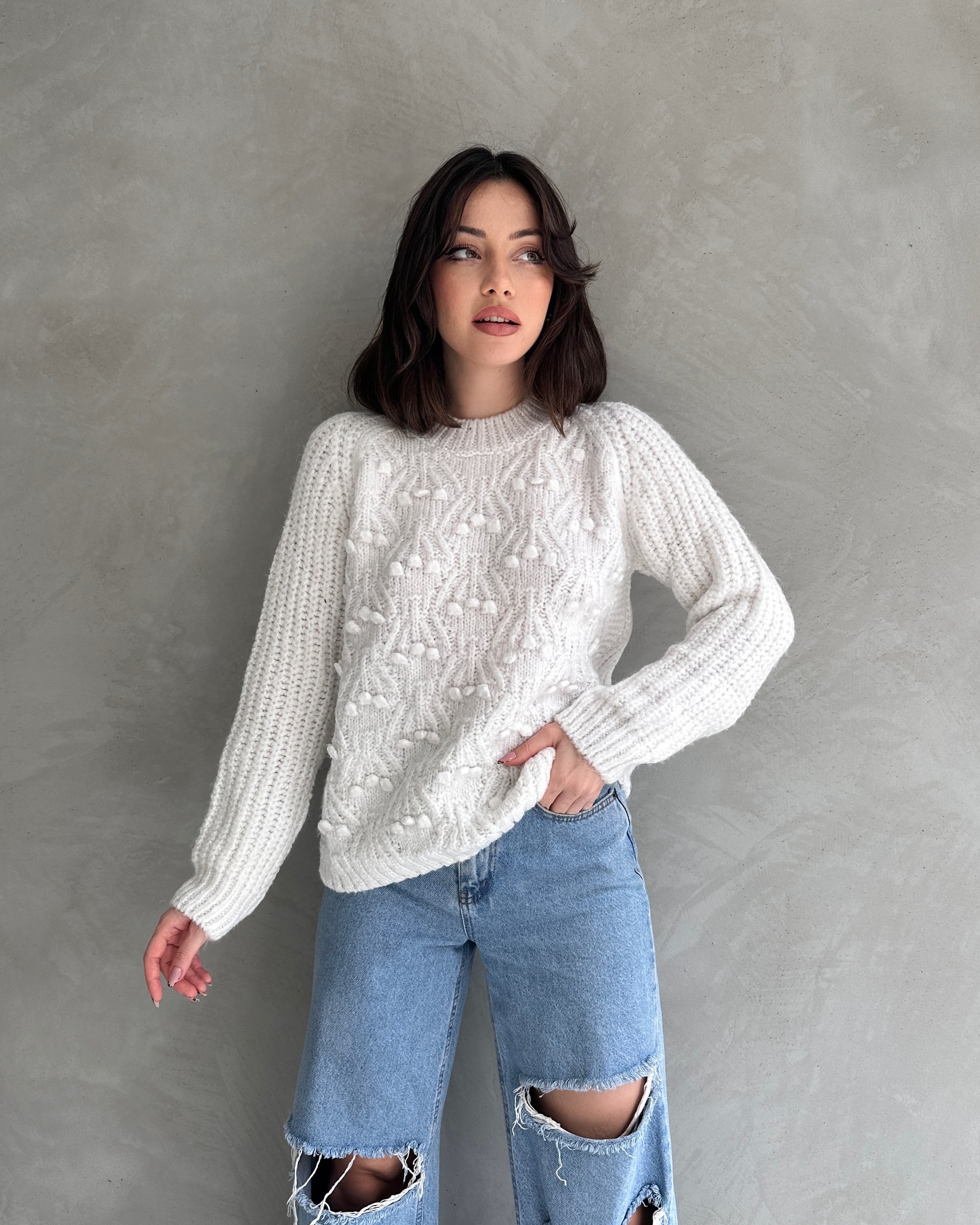 Ürün Adı :Bisiklet Yaka Bürümcük Detaylı Triko Kazak